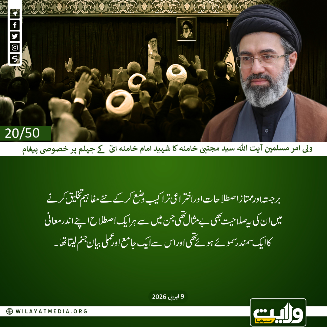 - ولی امر مسلمین امام سید مجتبیٰ خامنہ ای کا شہید امام خامنہ ایؒ کے چہلم پر خصوصی پیغام کا تصویری مجموعہ | دوسرا حصّہ